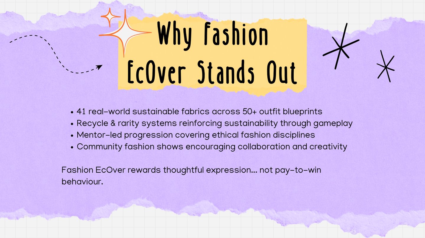 Coming to PC and Mobile, Fashion EcOver is a fashion-designer experience that teaches players about sustainable clothing consumption.