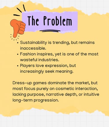 Set in the city of Ecopolis, players rise as new designers by sourcing eco-friendly materials, crafting fabrics and garments, and competing or collaborating in eco-focused fashion shows.